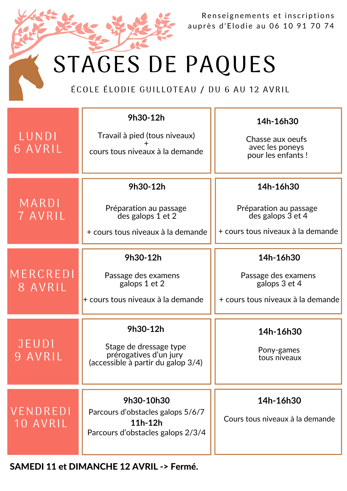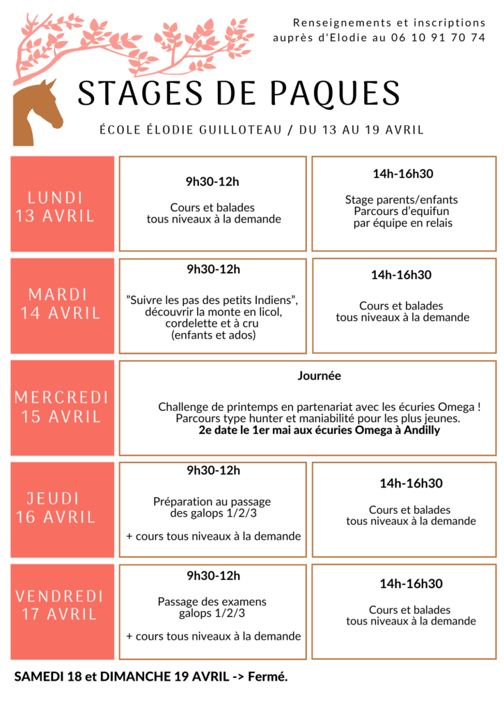 Le programme des vacances d’Avril